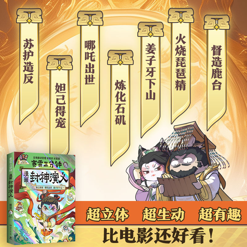超萌赛雷全场景爆笑哪吒出世妲己得宠敖丙大战儿童神话故事书DD 赛雷三分钟漫画封神演义哪吒之魔童闹海 央视网赠印签封神闪卡