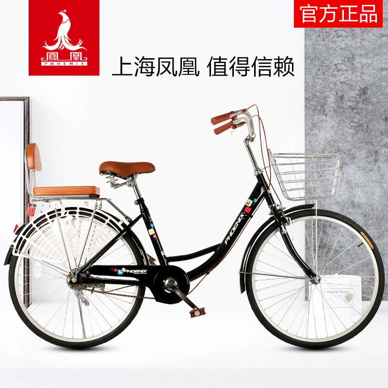 凤凰自行车女式 26寸普通单车成年大学生上班通勤车 轻便24
