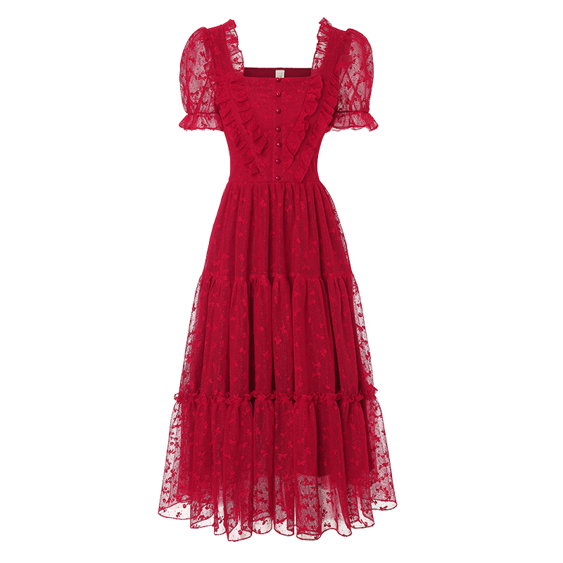 红色气质名媛高端女神范高级感长裙女 新款 西装 收腰连衣裙2025夏季
