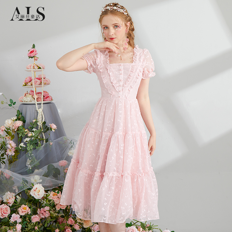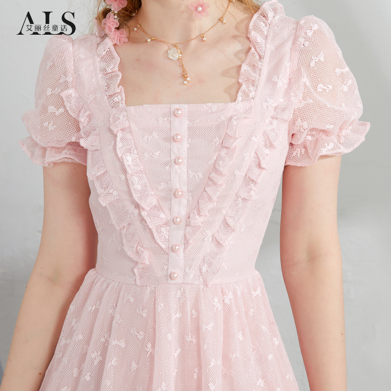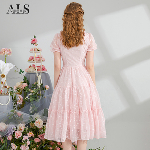 菲梦伊钉珠粉色网纱连衣裙女夏装 高级感甜美收腰减龄超仙裙子 法式