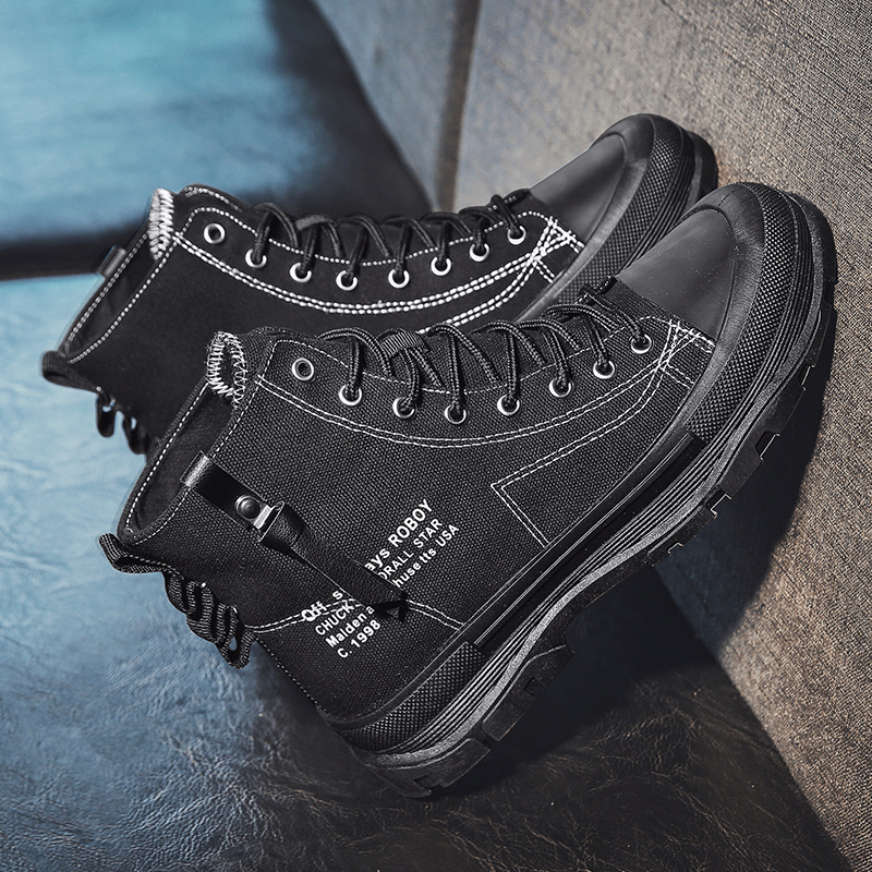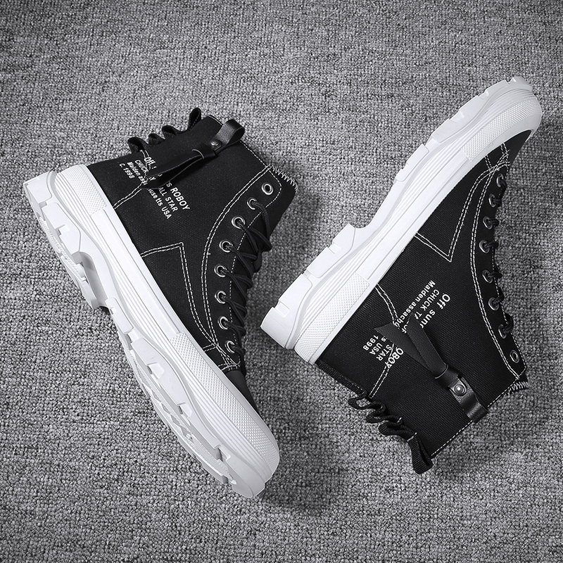 透气运动休闲百搭板鞋 春季 中帮厚底一脚蹬潮流中帮 男款 高帮帆布鞋