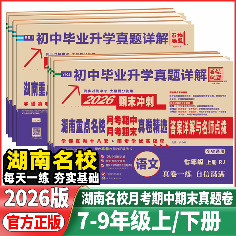 真题详解题试卷答案详解名师点评 语文数学英语初中毕业升学七年级上册下册人教版 2026版 湖南重点名校月考期中期末冲刺真卷精选