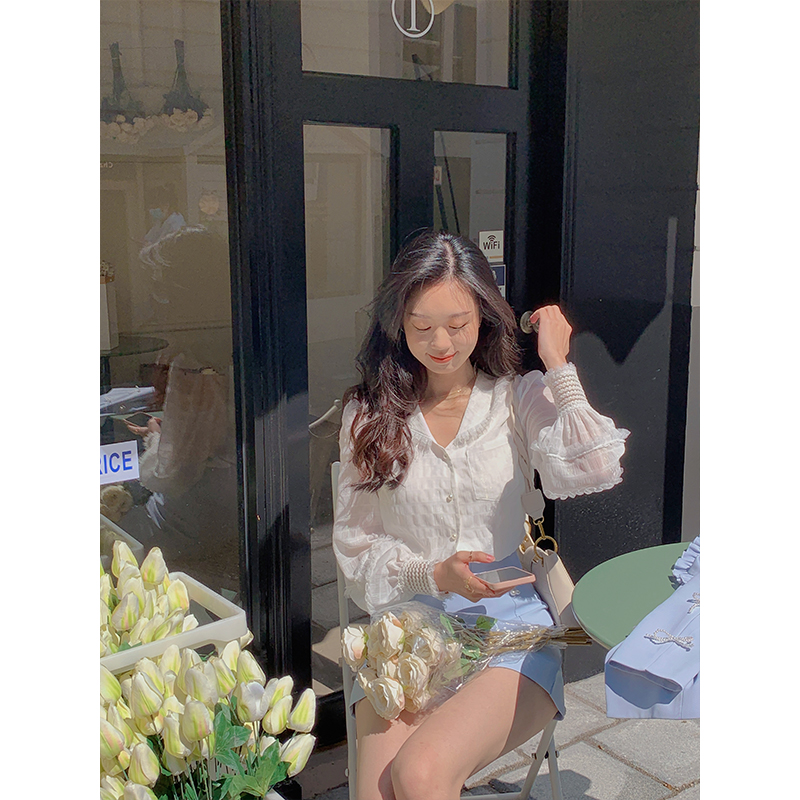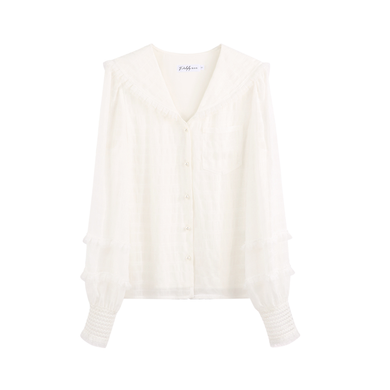 2022年春季 雪纺衫 新款 超仙 蕾丝内搭小众设计感上衣 女装 白色衬衫