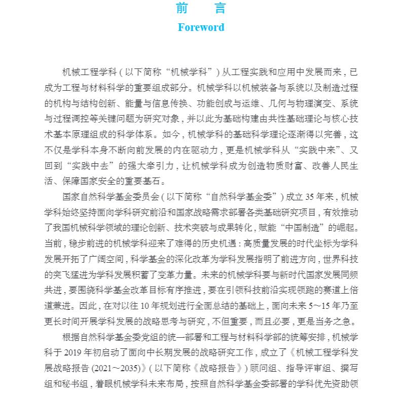 现货机械工程学科发展战略报告2021 2035机械工程学科发展战略研究报告系列国家自然科学基金委员会工程与材料科学部9787030705457