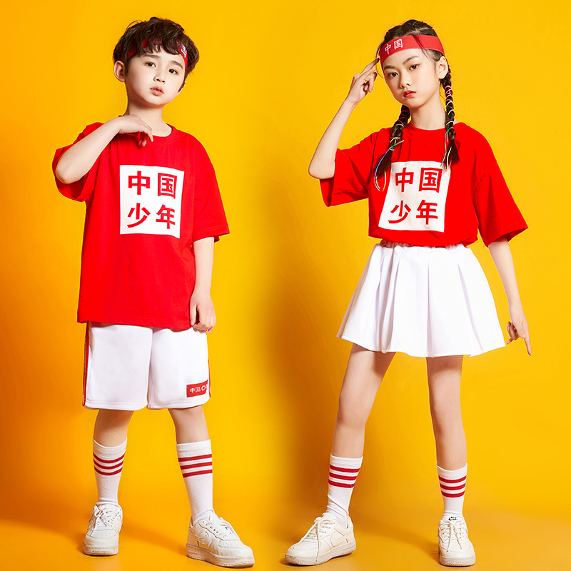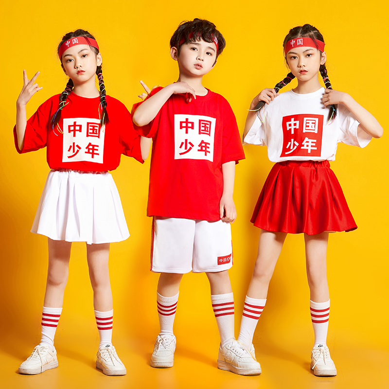 六一儿童啦啦队演出全棉上衣运动会开幕式 啦啦操表演校园方队服