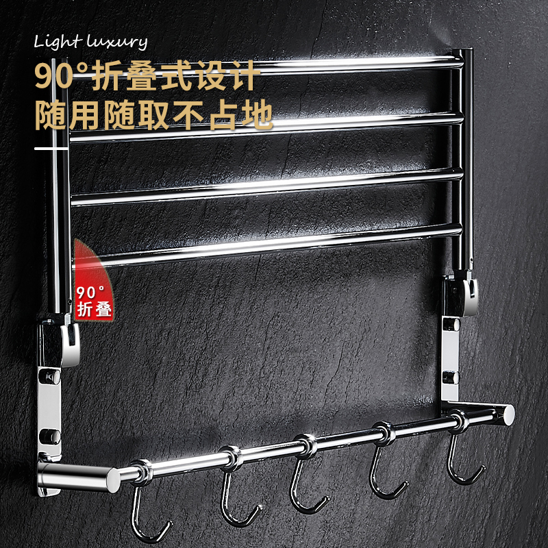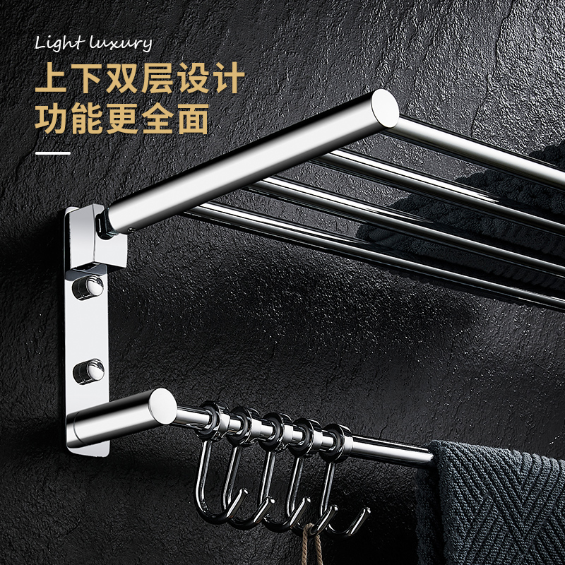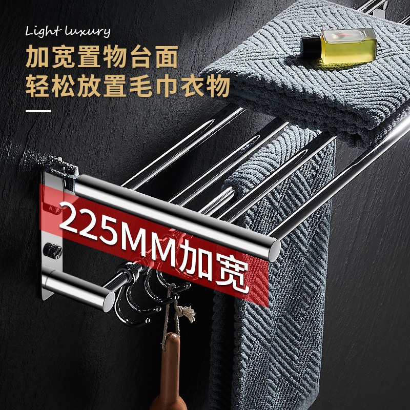 304不锈钢浴巾架加厚卫生间浴室五金挂件轻奢风毛巾置物架免打孔