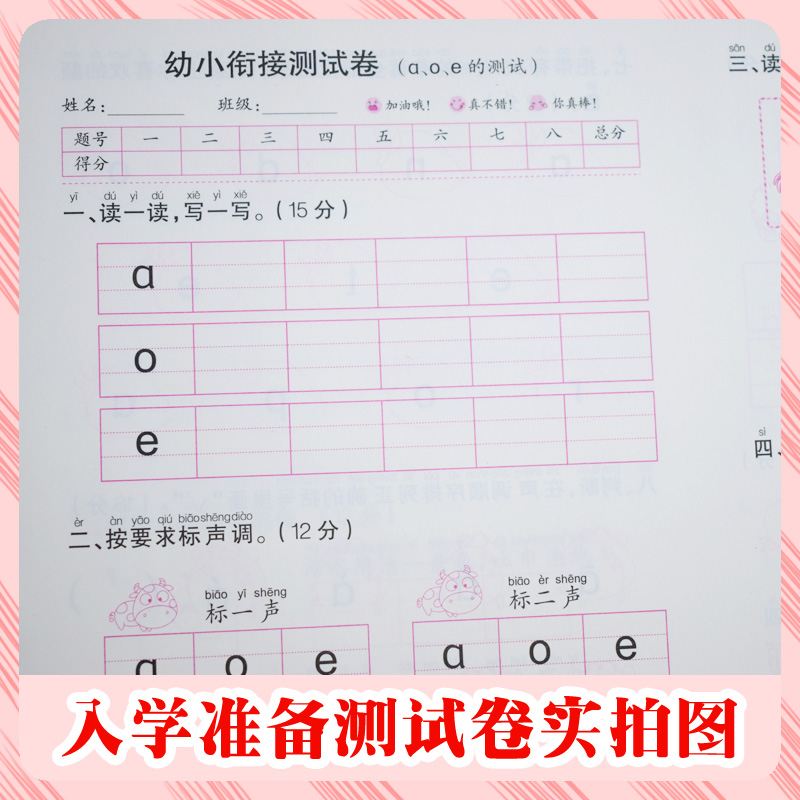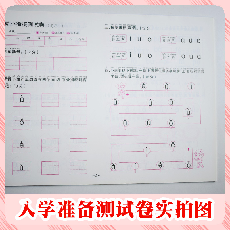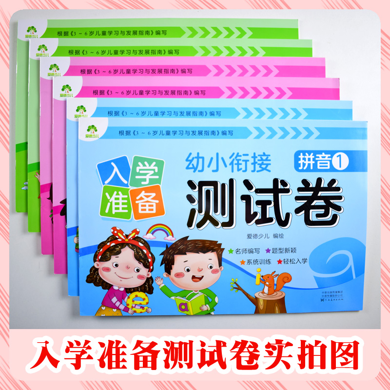幼儿园早教大班幼升小练习册3456岁儿童启蒙知识准备训练 侧翻版 爱德少儿河南美术 入学准备幼小衔接测试卷拼音数学语言单册1
