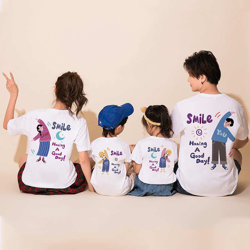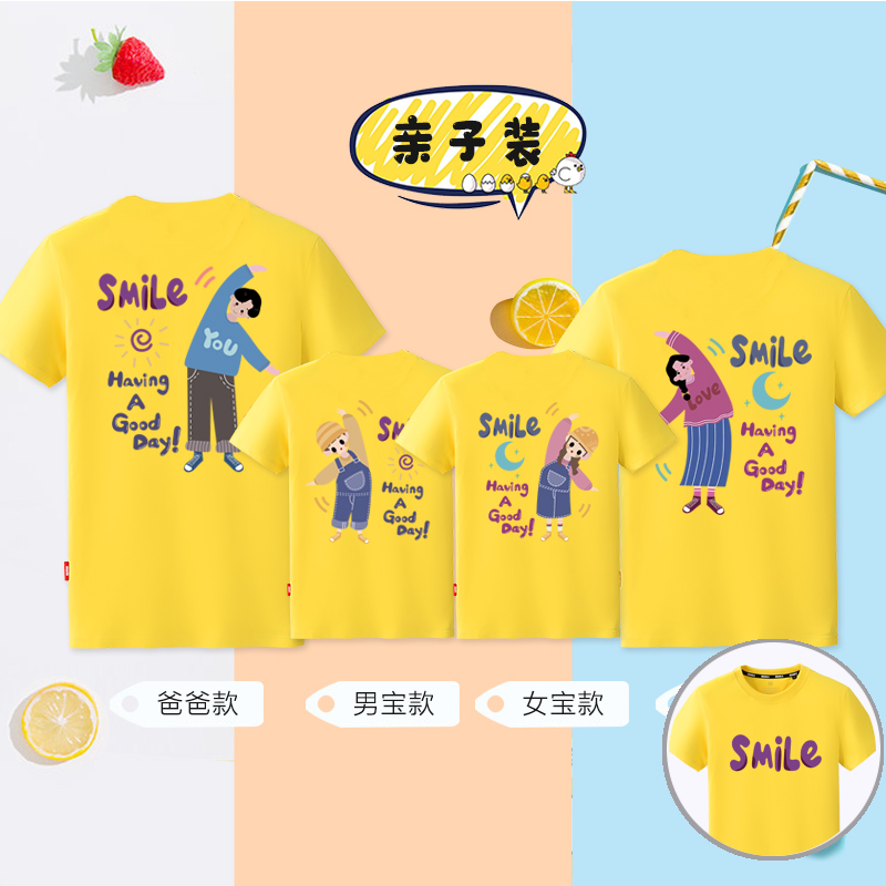潮纯棉短袖 新款 T恤一家三口装 母子母女装 高端亲子装 全家庭装 夏装