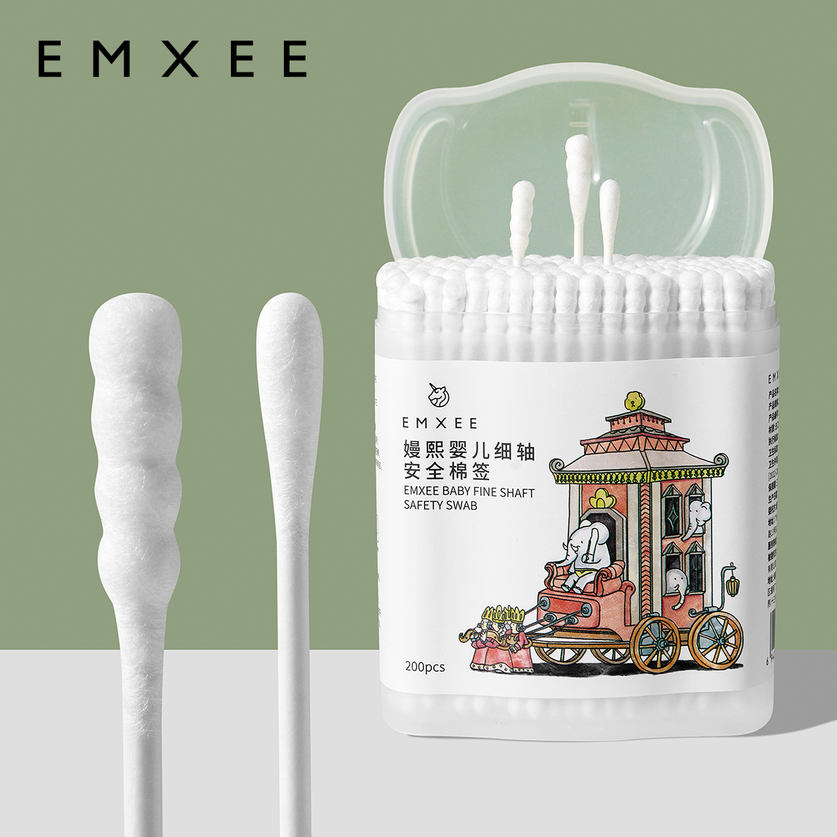 嫚熙婴儿棉签新生儿耳鼻专一次性清洁棉棒200支 顺手买
