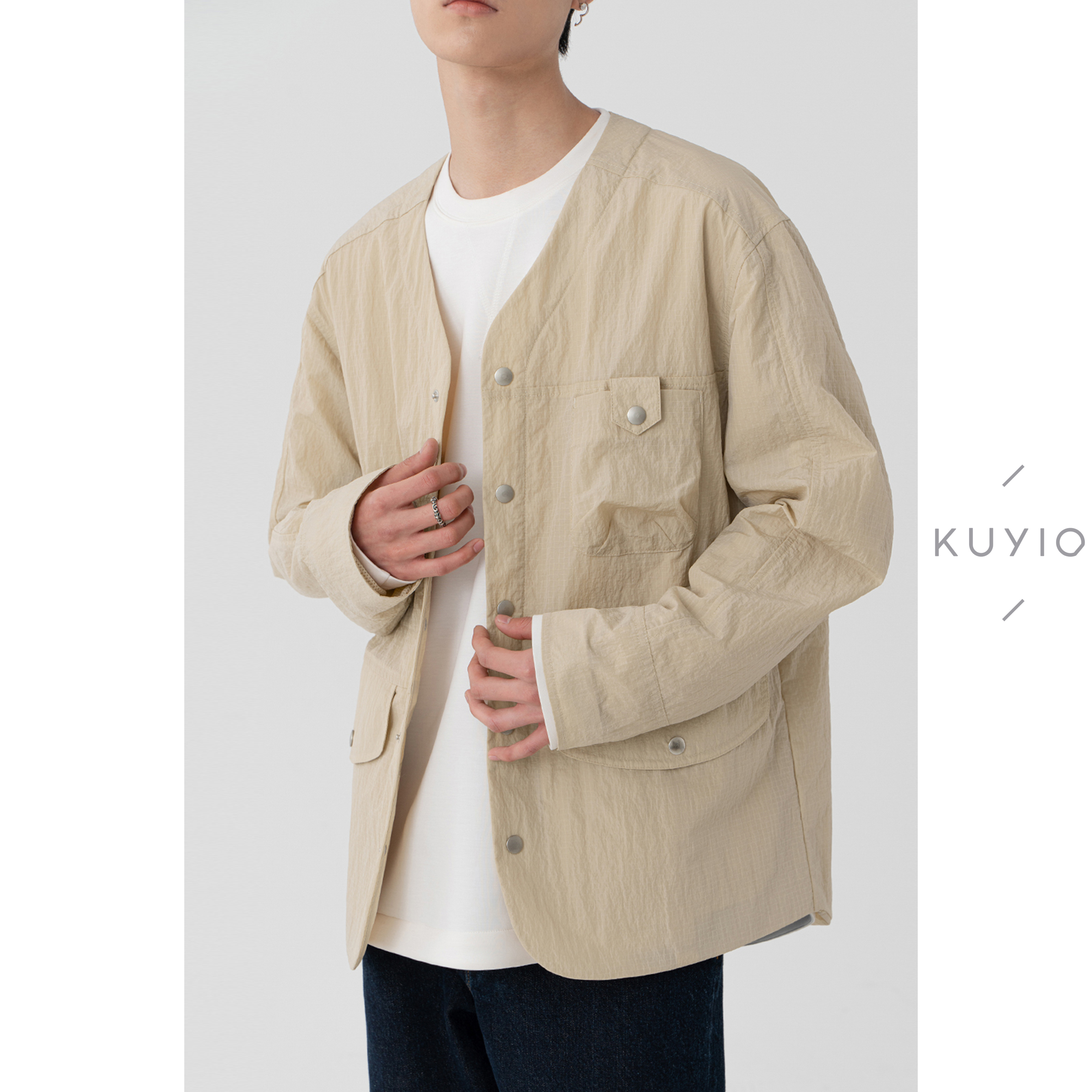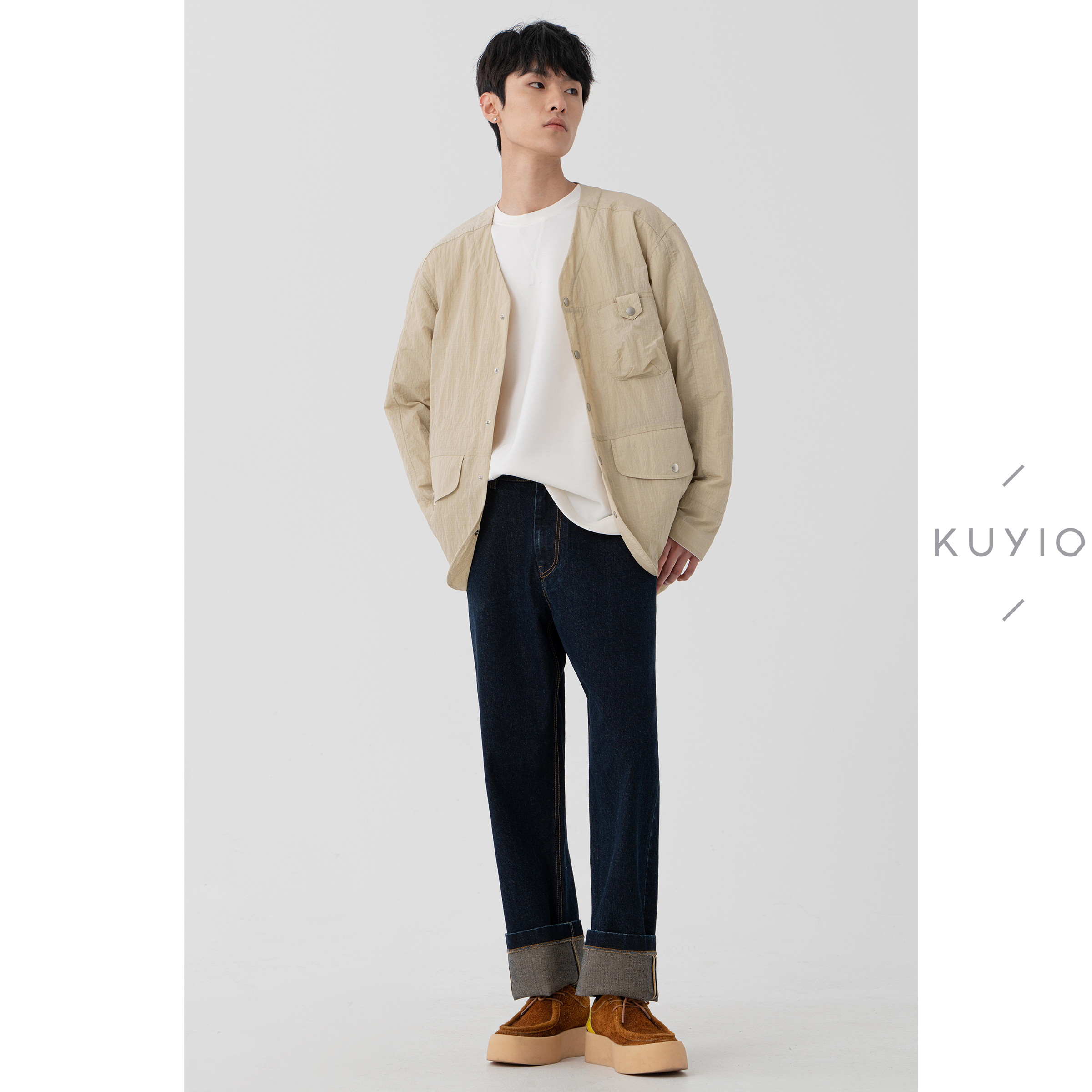 牛仔衣 工装 高级感防褪色原色水洗牛仔外套男宽松大码 翻领夹克新款