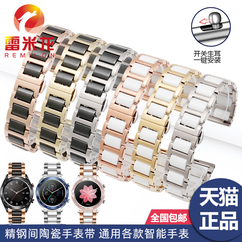 适配Ticwatch3 Active PRO3佳明Move3 Luxe Venu华米GTR3智能手表腕带间陶瓷表链配件 Style 优质陶瓷手表带