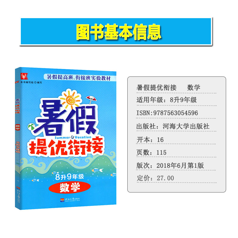 津桥书局初中数学暑假提优衔接8升9年级数学 暑假提高班.衔接班实验教材全国通用巩固与衔接系统与扩展新鲜与活泼教学参考资料