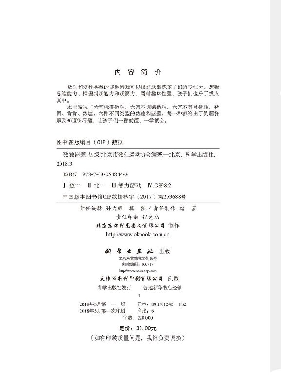 初级 数字游戏科学出版 北京市数独运动协会休闲 游戏 社9787030548443 爱好 数独谜题