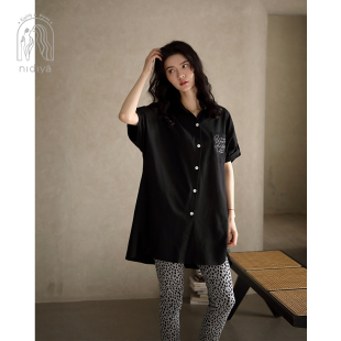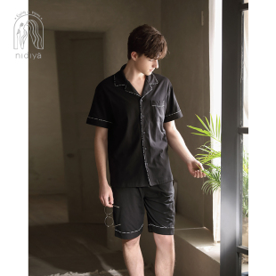 纯棉短袖 男家居服套装 中长版 小脚裤 开衫 妮狄娅情侣睡衣女夏季