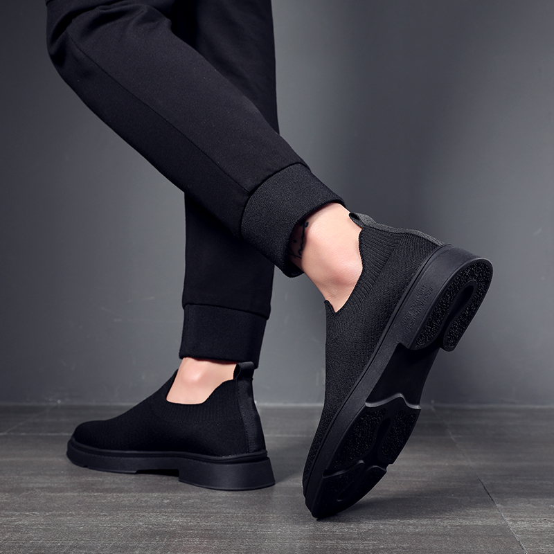 袜子鞋 2024新款 男休闲布鞋 黑色针织鞋 子 秋季 一脚蹬懒人鞋 透气男鞋