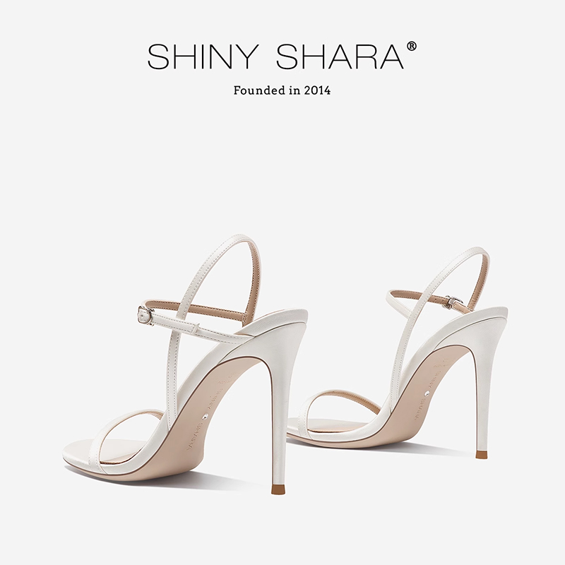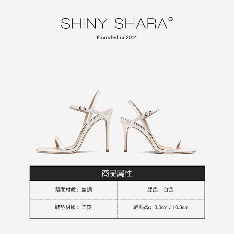 凉鞋 Shiny 简约通勤白色细跟一字带高跟鞋 诗莎2025新款 女 Shara