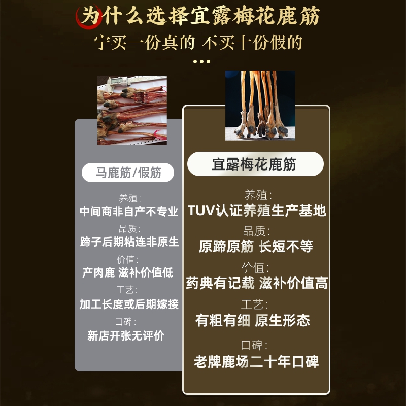 宜露梅花鹿筋干鹿筋粉吉林整根鹿蹄筋正品 干货煲汤泡酒整只送礼