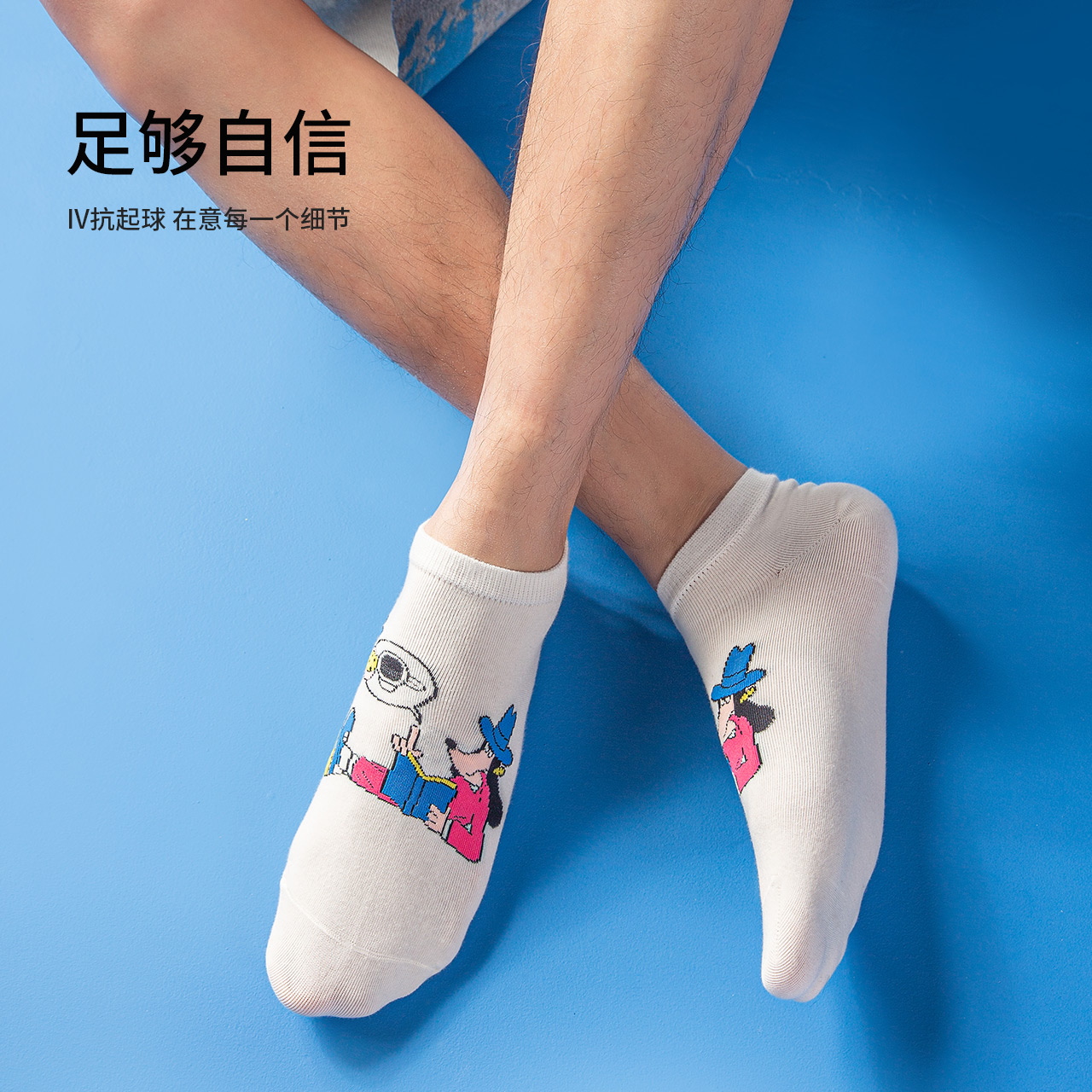 船袜 纯棉夏天短袜男士 雅鹿袜子男中筒防臭吸汗抗菌夏季 长袜薄款