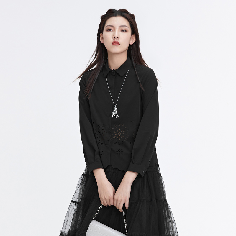 上衣2025秋季 女单排扣宽松通勤长袖 Eland衣恋衬衫 新款 100%棉
