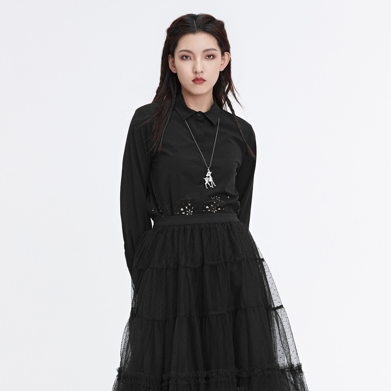 公式 衬衣2025春季 衬衫 女纯色棉感舒适长袖 新款 Eland衣恋衬衫