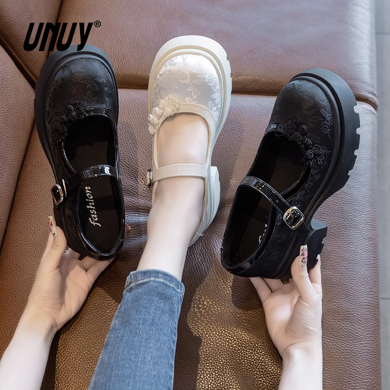 法式 小皮鞋 新款 女2025秋季 英伦风厚底增高玛丽珍粗跟系带 乐福鞋