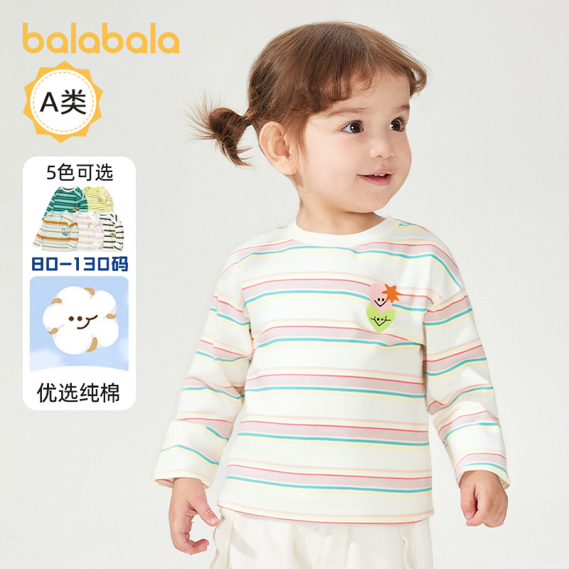 童装 婴儿宝宝条纹上衣秋新款 t恤男童纯棉打底衫 巴拉巴拉儿童长袖