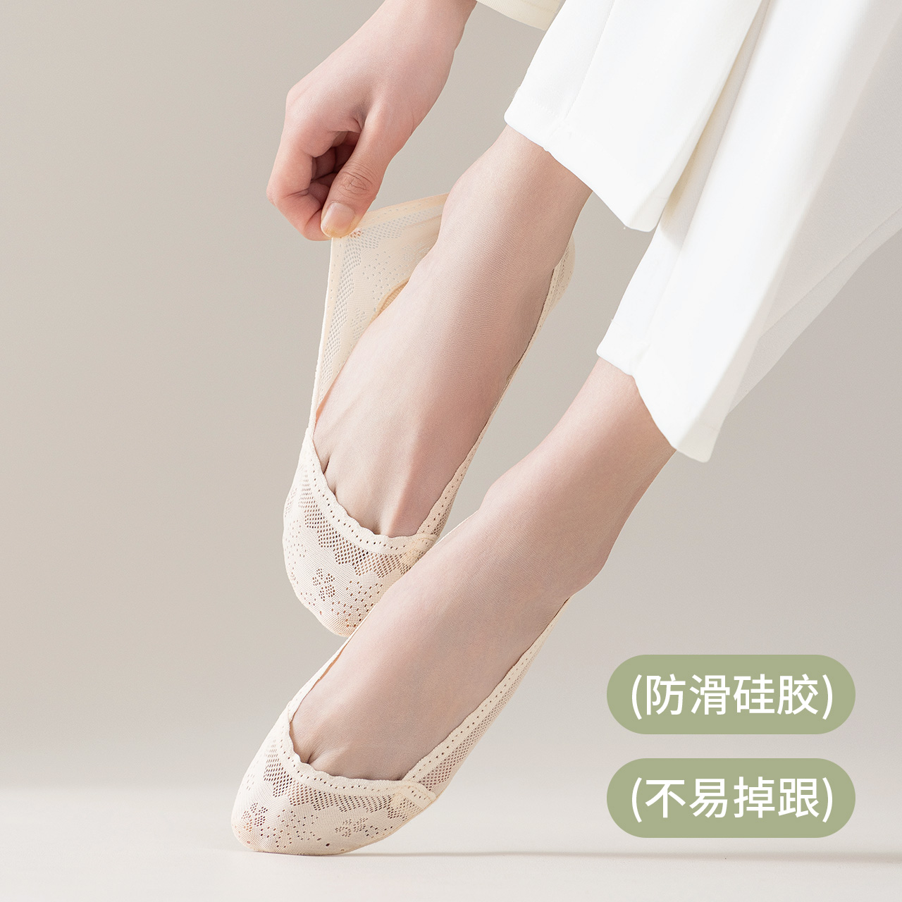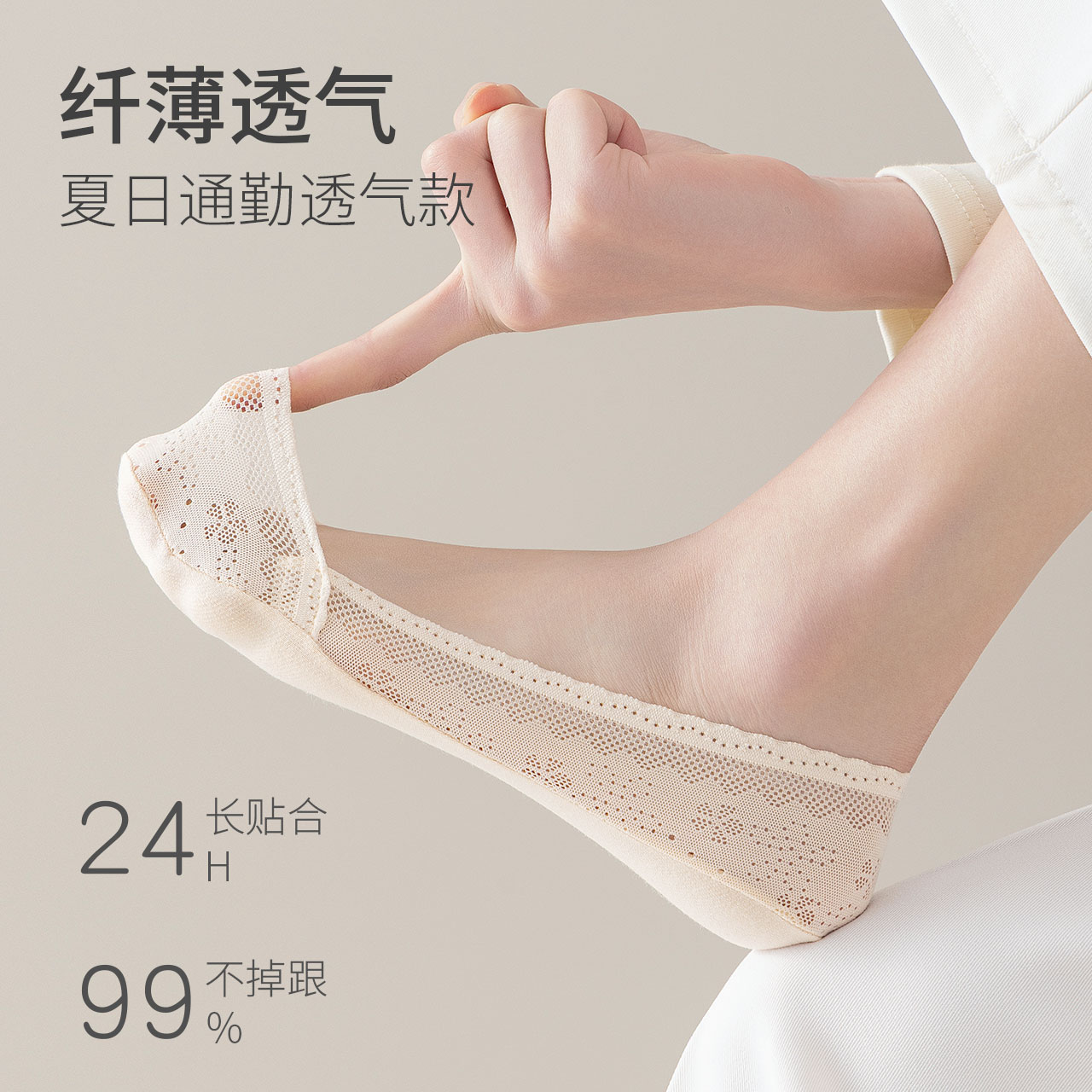 高跟鞋 袜子薄款 袜子 冰丝隐形袜棉制底防滑不掉跟浅口鞋 船袜女夏季