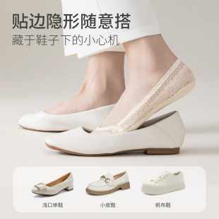 单鞋 棉质底高跟鞋 防滑脱不掉跟浅口隐形袜子 薄款 护跖骨船袜女夏季