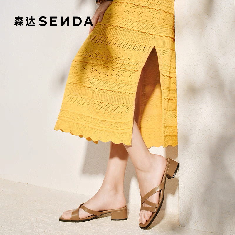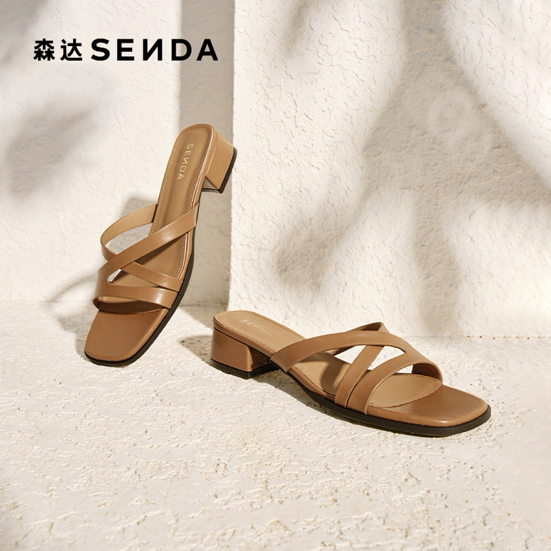 外穿舒适休闲粗跟凉拖鞋 森达一字拖女款 时尚 新款 ZTG67BT5 2025夏季