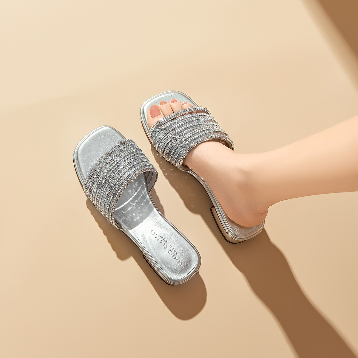 凉拖鞋 戈美其商场同款 百搭时尚 女夏外穿2025新款 方头水钻一字拖鞋