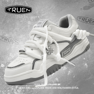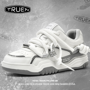 透气厚底增高百搭休闲小白面包鞋 真恩转运板鞋 男国潮原创夏季