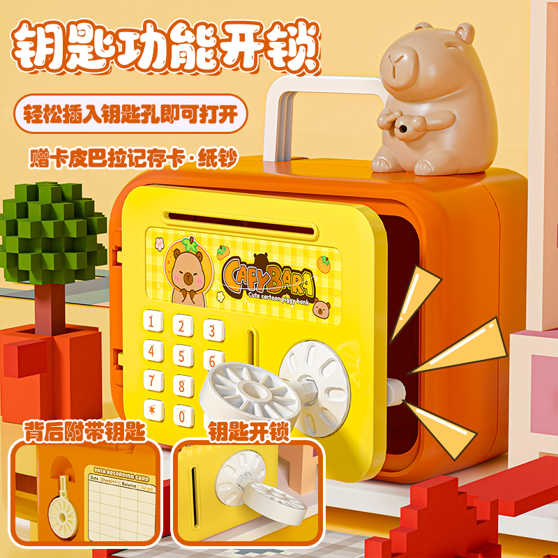 2025新款 锁保险箱玩具 卡皮巴拉存钱罐男女孩儿童储蓄只进不出密码