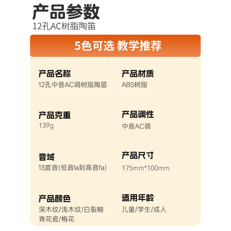 陶笛乐器青花瓷12孔中音AC仿木树脂防摔初学者小学生专用防木纹