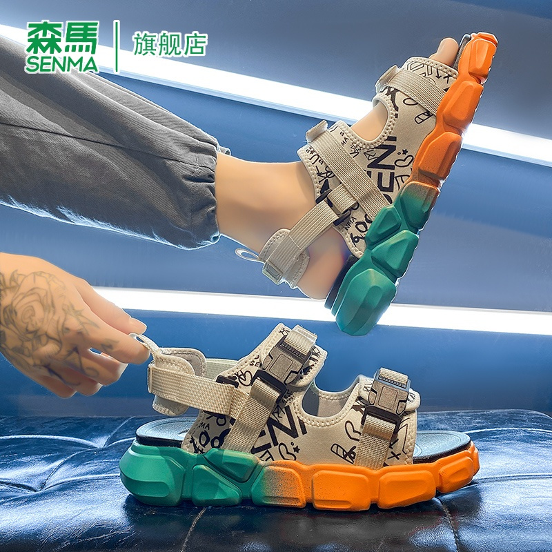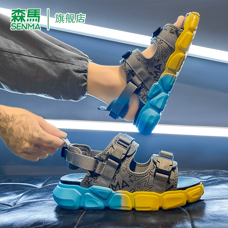 户外运动休闲防滑防臭沙滩凉鞋 外出两穿包头拖鞋 男夏季 森马洞洞鞋