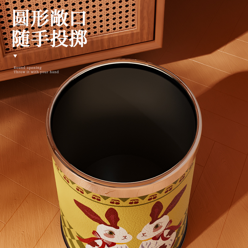 中古风皮革客厅垃圾桶家用2025新款 高颜值不锈钢大容量卧室垃圾桶