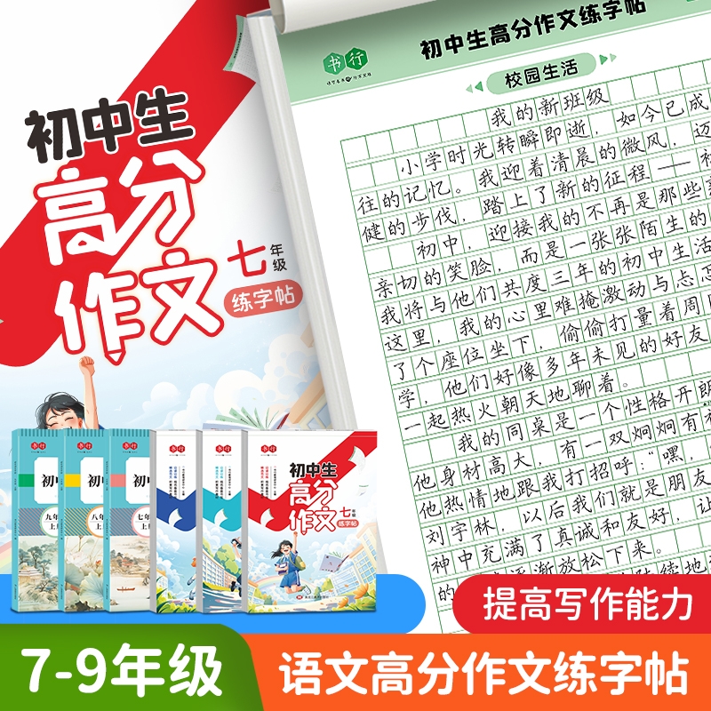 同步练字帖好词好句好段练字帖历年真题高分写作七八九作文素材初一二三正楷书钢笔描红 初中生人教版 中考满分高分作文字帖7 9年级