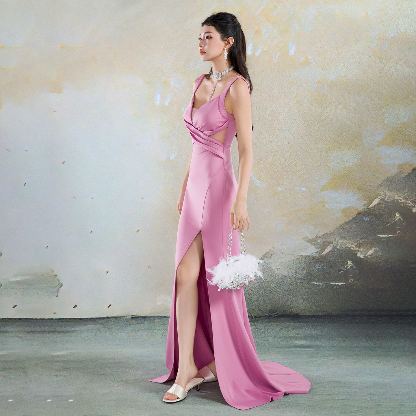 欣雪莎收腰开叉连衣裙设计感紫色party小礼服主持人公司年会走秀
