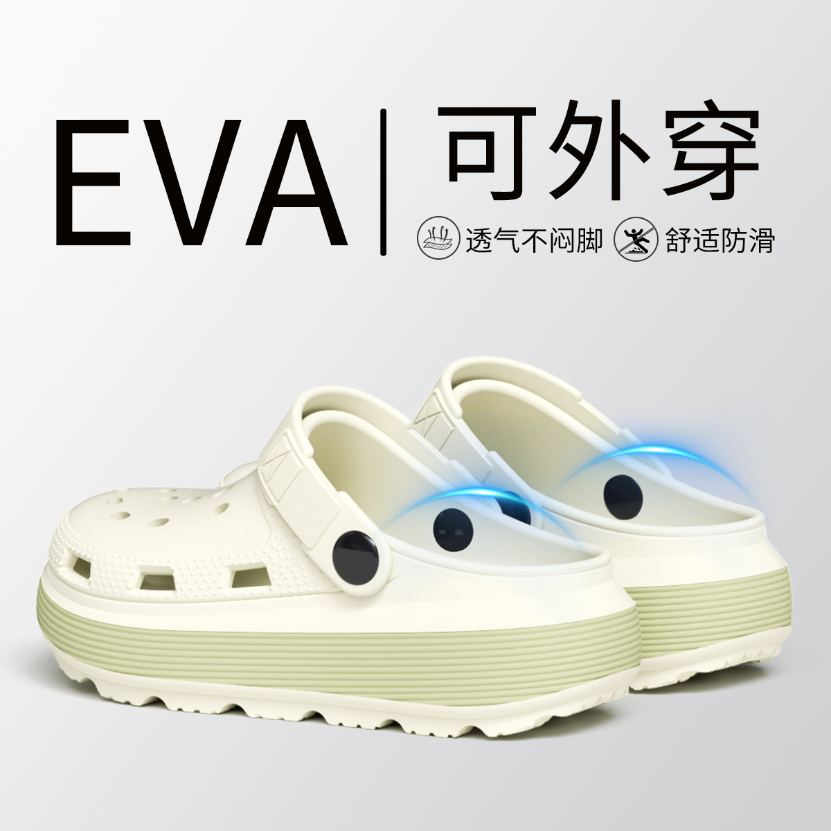 外穿2025新款 夏季 海边沙滩鞋 防滑凉鞋 洞洞鞋 厚底增高包头拖鞋 男士