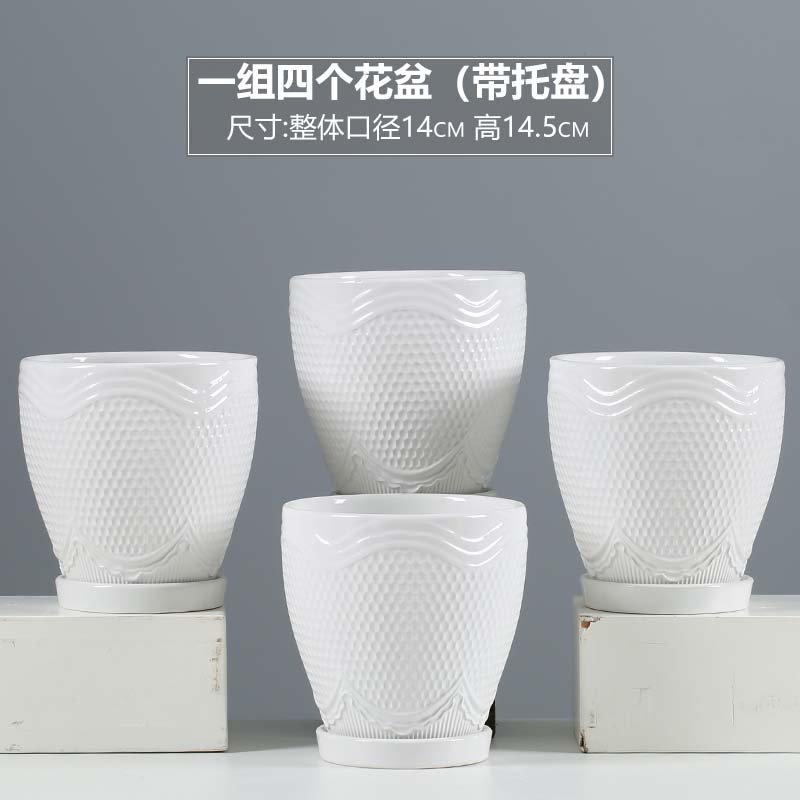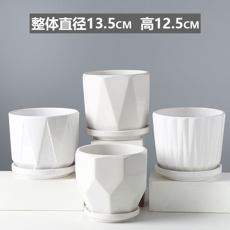 花盆陶瓷白色轻奢简约特价 清仓大号带托盘家用绿萝吊兰多肉小花盆