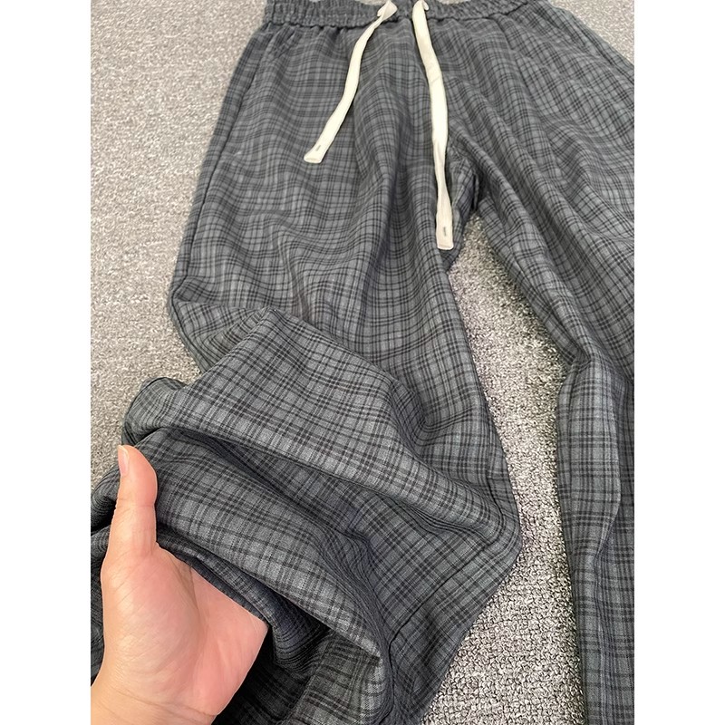 子直筒宽松微喇裤 慵懒松弛感阔腿裤 夏季 cleanfit黑白格瘦高个男裤