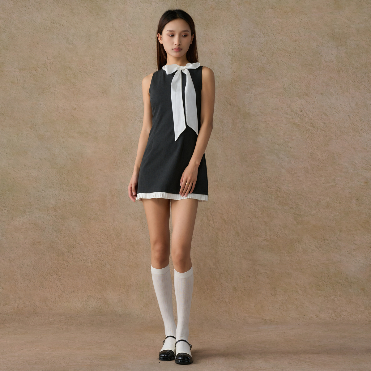 气质无袖 新款 裙子XAAB10214 珍珠系带拼接连衣裙夏季 西町村屋法式