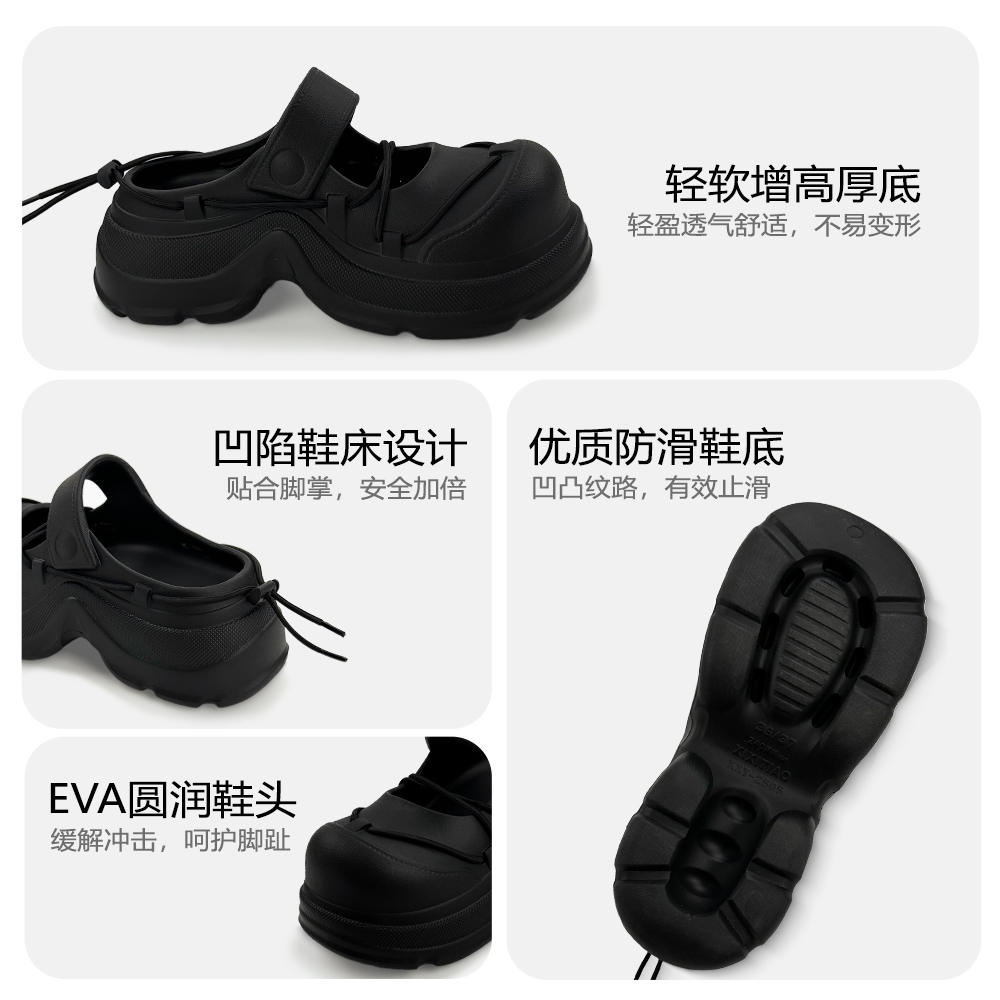 ins风女外穿玛丽珍洞洞鞋 细细条 百搭厚底防滑系带凉拖鞋 时尚 夏季