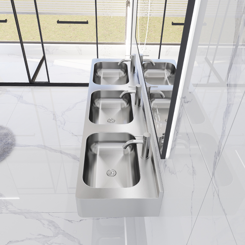 304不锈钢一体成型挂墙式 台盆洗手池公共学校医院连盆洗手盆定制