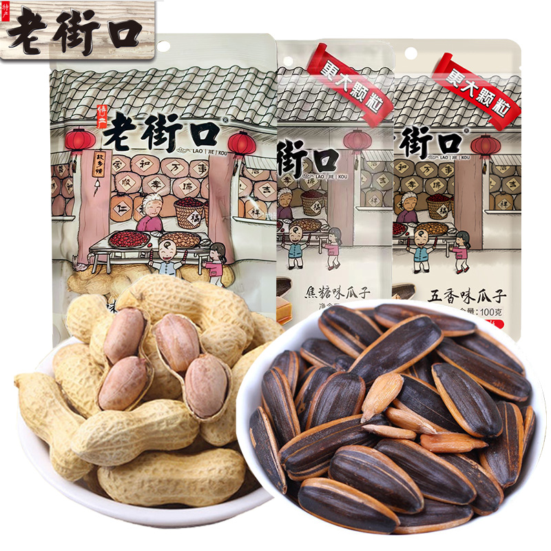 大颗粒葵花籽坚果炒货零食 袋装 老街口瓜子 焦糖五香奶油山核桃味