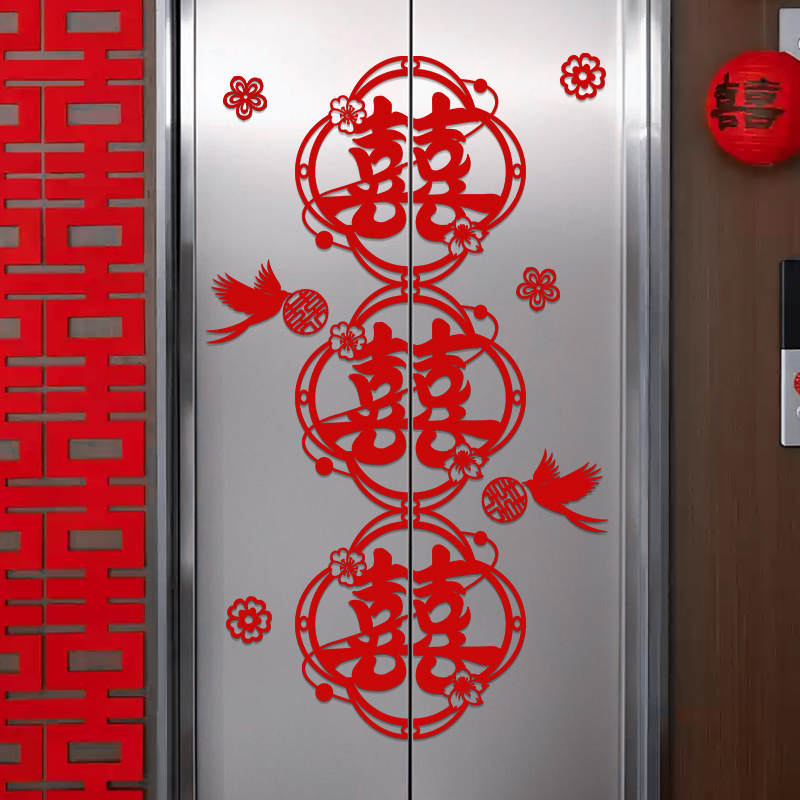 电梯贴纸喜字告示结婚专用喜字贴订婚礼门贴酒店婚房布置囍字贴