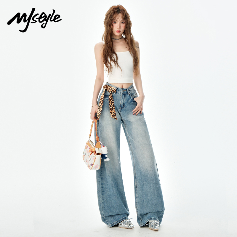 慵懒拖地直筒裤 女2025夏季 宽松阔腿牛仔裤 淘稚气防褪色丹宁蓝美式