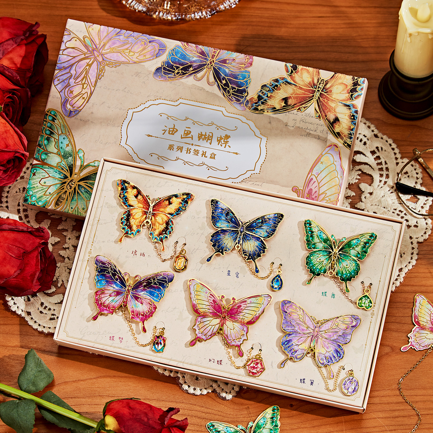 蝴蝶金属书签复古高颜值ins精致油画书签古典中国风实用生日礼物送女生毕业礼物全班奖励礼品故宫文创纪念品