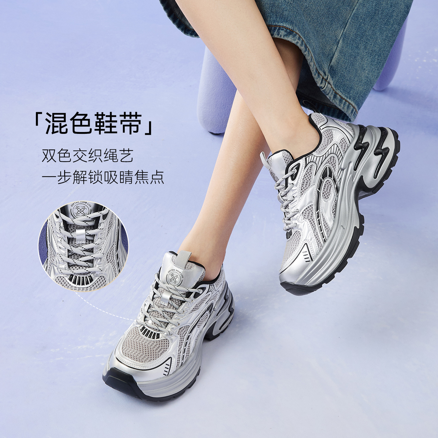 鞋 秋季 子休闲鞋 透气软底老爹鞋 鸿星尔克逸界情侣运动鞋 女鞋 男鞋