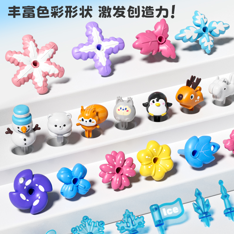纽奇益智积木拼装 玩具女男孩百变冰雪花园插花拼图大颗粒宝宝积木