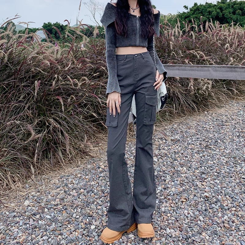 裤 高腰显瘦辣妹喇叭工装 女春夏2025新款 拉夏贝尔灰色微喇牛仔裤